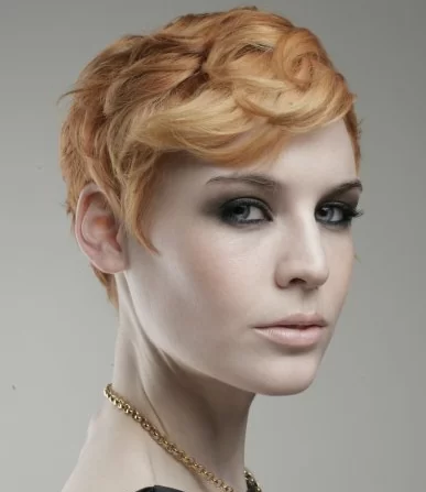 A modern version of the Eton crop style that was popular in the 1920s, this pixie is styled in soft waves that are more relaxed than traditional finger wave styling.