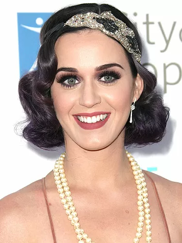 Katy Perry loves trying on different hair colors and vintage looks, and this style is the perfect marriage of the two. Her deep violet locks are in a blunt bob styled with big curls that could pass as a modern hairstyle, but the headband and choice of jewellery make this look pure flapper.