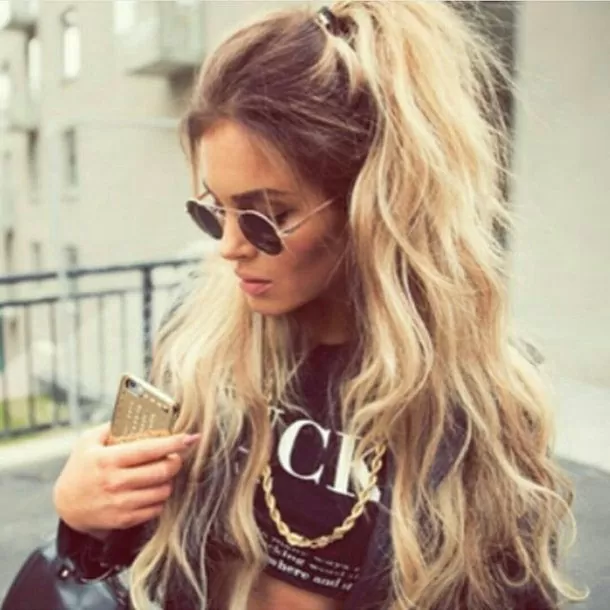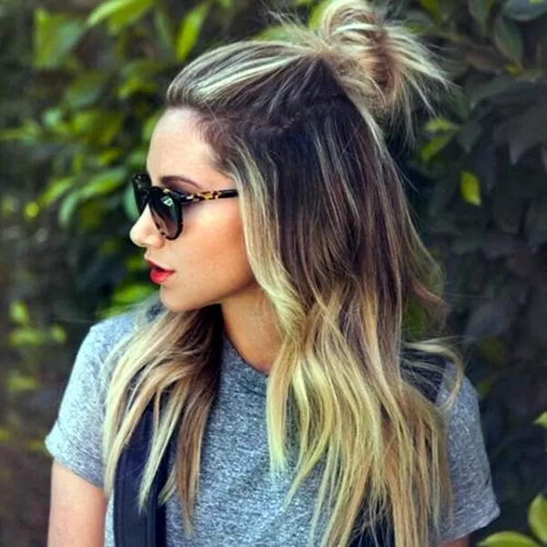 If you like a super casual messy hair look, this half top knot is super chic and looks so effortless. If you want to switch up your ordinary blonde top knot, try this long messy half top knot style.