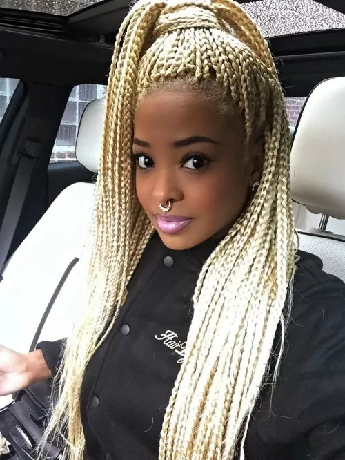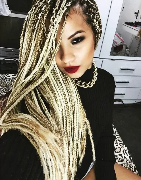 The use of blonde extensions make these box braids the perfect combination of glam and edgy styles.