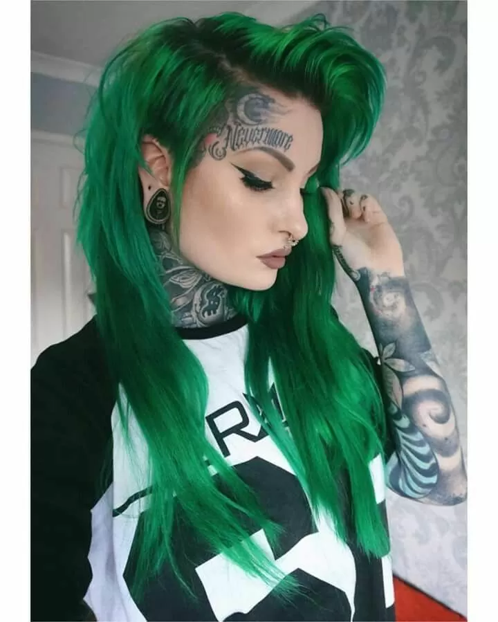 With all of the bold colors that are popular right now, a neon color is still one way to make sure you have the most unique hair around. Neon green lengths get a bit of color variation with a darker green ombre, giving you a bold and fun green-on-green style.