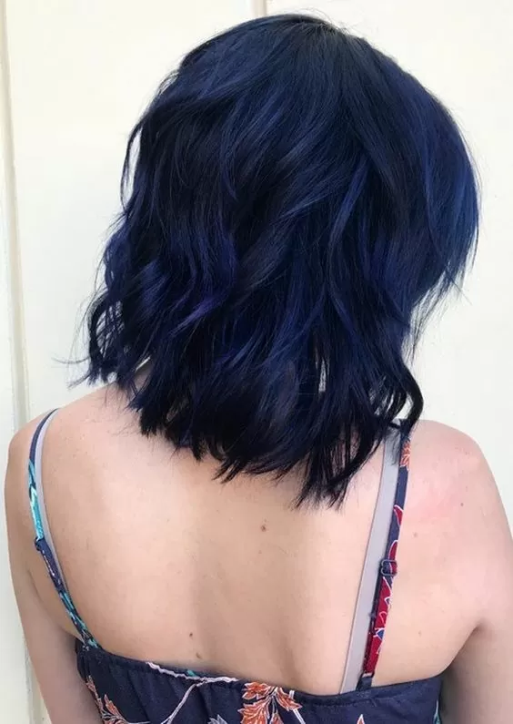 A blue-black color applied sparingly over hair’s outer layers creates this iridescent shine that will glow beautifully when sunlight hits your hair.
