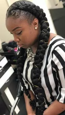 There’s something special about alternating braids thickness. It’s ultra modern and also has a nice resemblance of nice fabrics and patterns from the mother continent. Wrapped hair to conceal ponytails adds elegance to this look.
