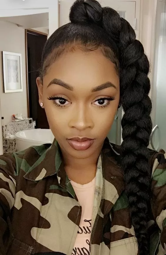 8Super Sleek And Thick Single Braid Ponytail With Weave