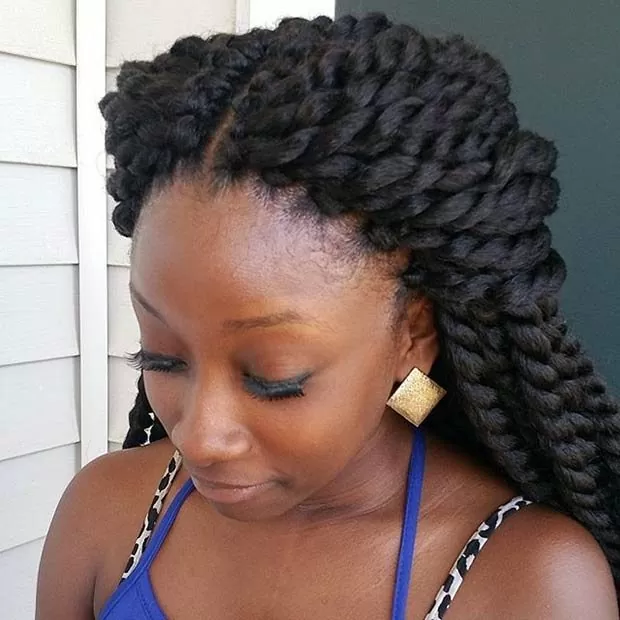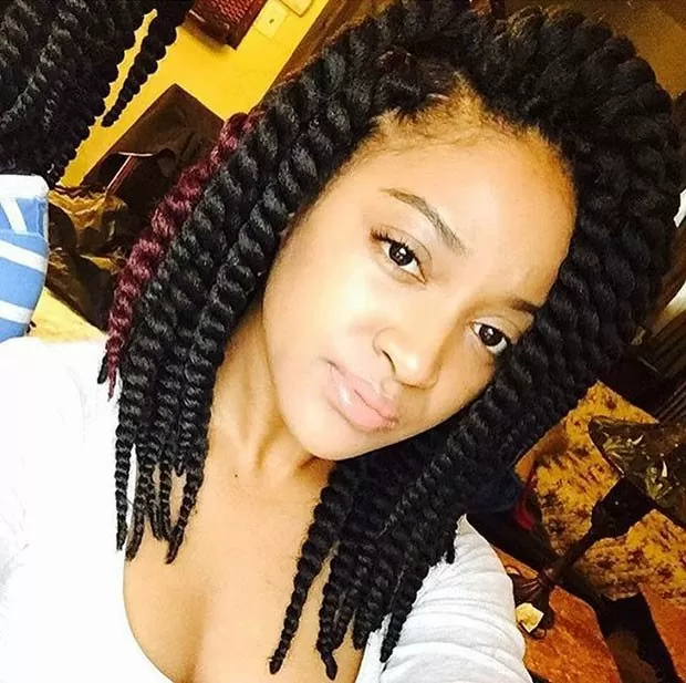 These stunning Mambo twists are simple and beautiful. Pull the twists back with pins or a fancy clip and you are good to go. Sometimes the simple styles are the best ones. Make sure your eyebrows are on point and a pair for chunky earrings to complete your look.