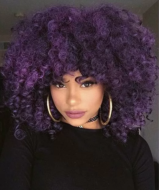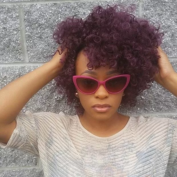 Deep purple curls give this funky look its style. This is a good look for anyone confident enough to try something a little different. Crochet braids give you the chance to try a variety of hair textures and colors to match your personality.
