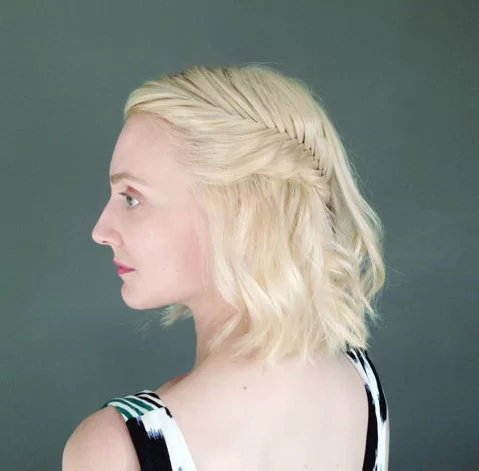 For shorter hair that can’t be braided into a long fishtail, this style will satisfy any braid envy you may be feeling. If your short hair has layers, you’ll need to use product to help keep hair from falling out of the braid, and don’t try this style on freshly washed hair, as it’s often too slippery to work into this kind of style.