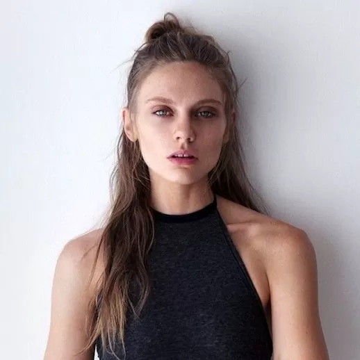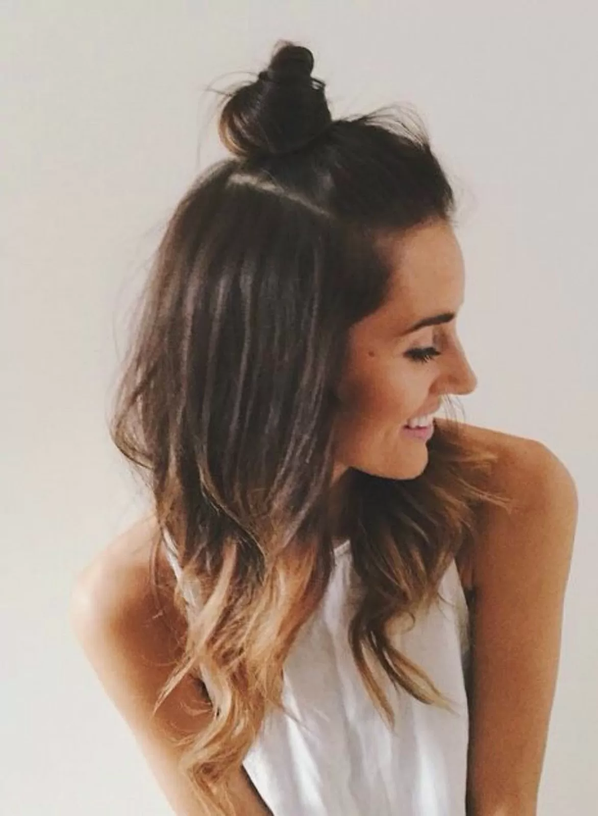 This dishwater blonde hair with lazy waves and a messy, half up top knot is the ultimate example of a fashion forward style that looks like it was achieved effortlessly.