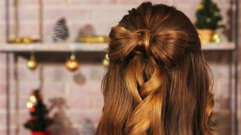 These double fishtail braids will take more time to pull together than a single braid, but are an easier look to achieve if you’re new at fishtail braiding and are practicing on your own hair.