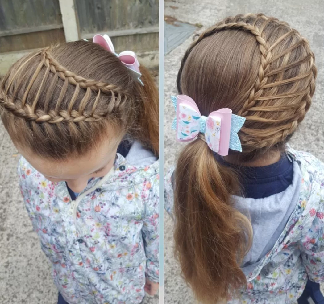 This cool crown braid is great for anyone who has hair that’s all one long length. Start with a waterfall braid that wraps around your head to create this crown shape. Once you’ve reached the opposite side of your head, braid downwards and then begin wrapping your braid back the other way, picking up the dropped sections to create a ladder effect.