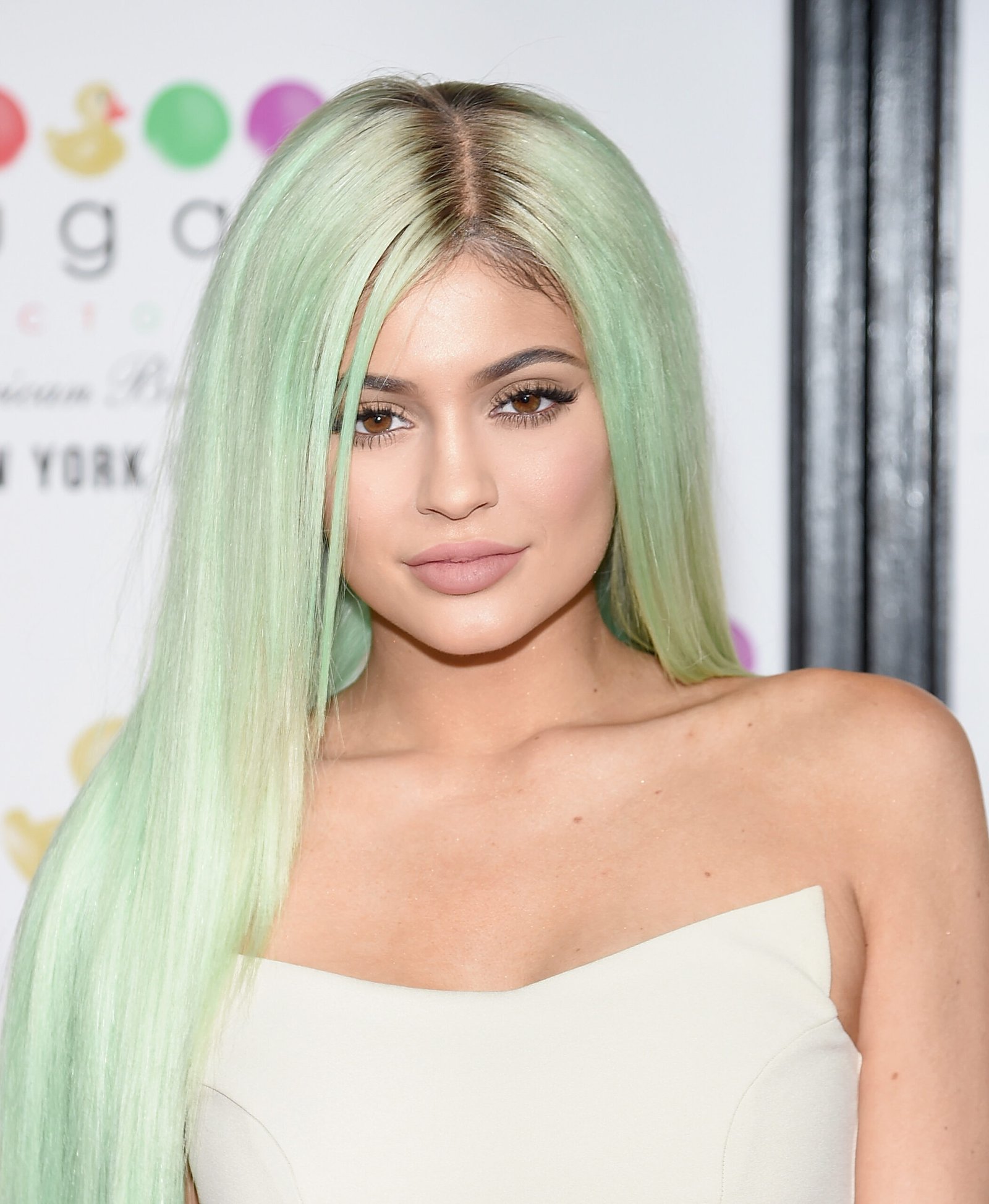 This style puts the “chic” in mermaid chic. We often see unnatural hair colours styled in waves or curls, which helps to accentuate multi-tonal hues or mask any flaws or gaps in the colouring. Kylie Jenner’s pin straight locks in a pastel sea foam hue draw extra attention to the flawless and dreamy colour, offset only by a strip of intentionally darker roots.