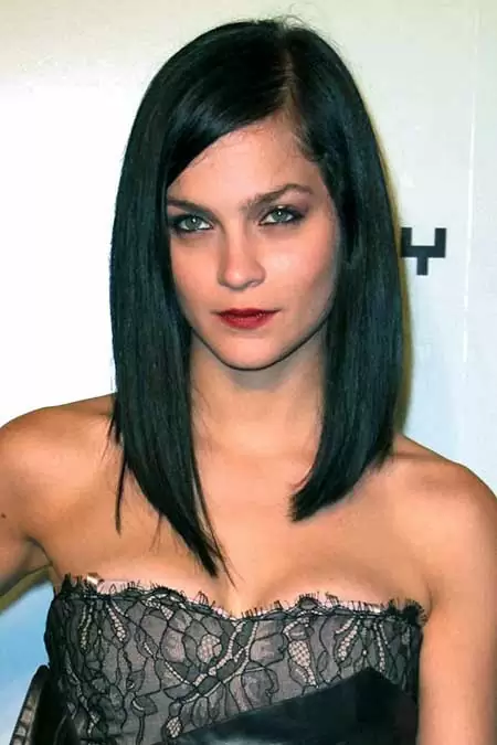 This modern version of a bowl cut or pageboy style does away with its predecessor’s harsh lines, but keeps the silhouette of straight hair falling from the crown of the head without a defined part. If your hair is naturally straight and fine, this cut styles itself, but hair with a wavy texture will take some work to smooth into place every morning.