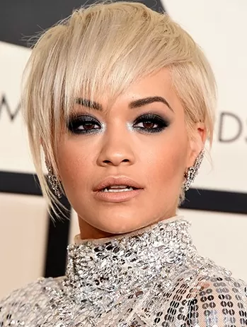 Rita Ora’s platinum pixie is about as glamorous as short hair gets, especially when paired with dramatic smoky eyes and crystal embellished accessories.