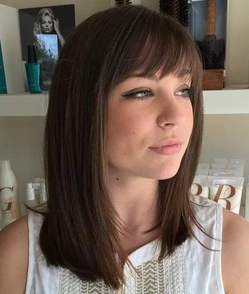 Jennifer Aniston’s centre parted lob is never looking better than with straight styling that perfectly frames her face. If you’ve got a round or square shaped face, these long bangs help slim the face by minimizing a pronounced jawline or cheeks.